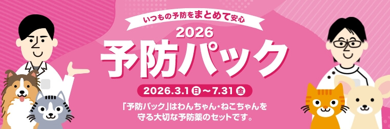 予防パックは、わんちゃん・ねこちゃんが1年間に必要な予防薬のセットです。さまざまな病気からわんちゃん・ねこちゃんを守りましょう。