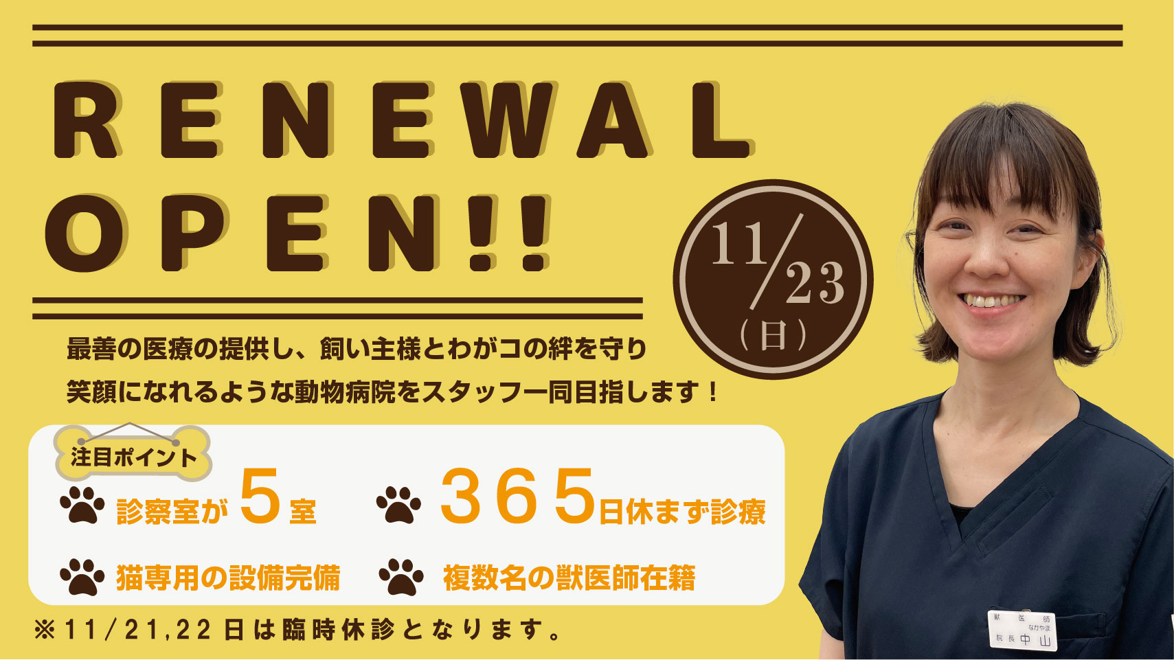 獣医師の勤務スケジュールが変更となっております。詳しくは勤務表をご確認ください。